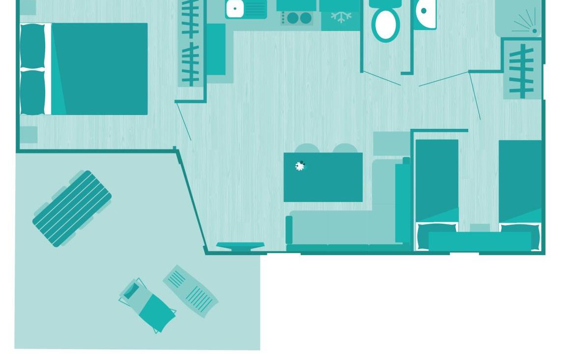 Mobilheim 4 Personen – 2 Schlafzimmer