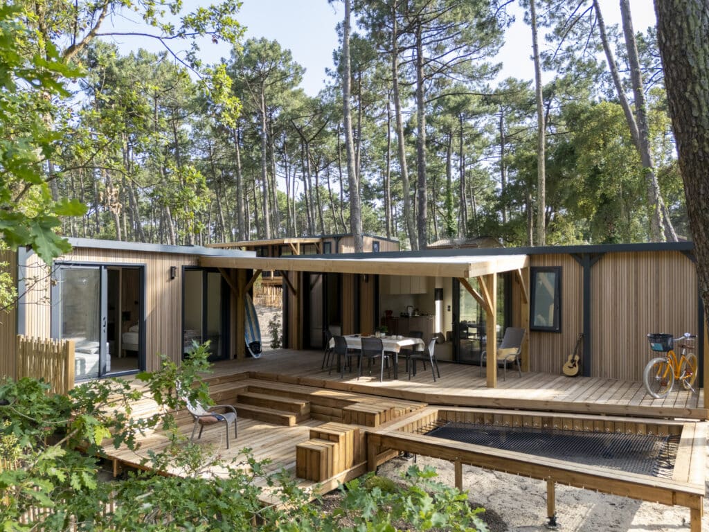 Entdecken Sie die Unterkünfte im Camping Eurosol, einem 4-Sterne-Campingplatz in den Landes. Ausgestattete Mobilheime, möblierte Zelte, Chalets und Hütten: Wählen Sie die Unterkunft und den Komfort, der am besten Ihren Erwartungen entspricht. Noch besser, wohnen Sie in einer außergewöhnlichen grünen Umgebung unter den ikonischen Kiefern der Landes.
