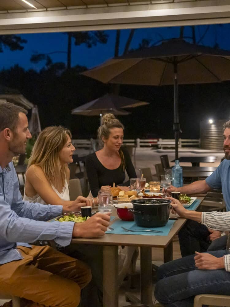 Discover also the village square, the emblematic place of the 4-star campsite in the Landes! Visit the campsite restaurant and enjoy a good meal in a friendly atmosphere. You’ll find a varied menu based on fresh produce. Regional cuisine from the South-West, world-famous dishes and vegetarian solutions… there’s something for everyone! Looking for a quick treat or a cold drink? Head for the snack bar, for a sweet treat, cocktail or chilled soda.