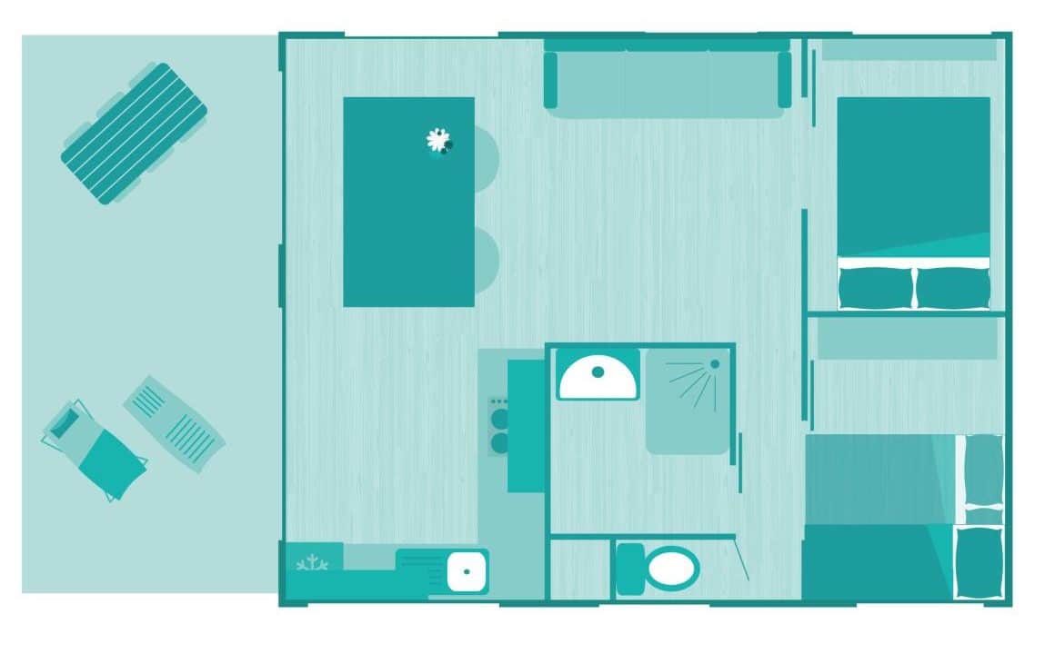 Tente Lodge Nature | 5 pers – 2 ch – 1 sdb | 4 fleurs