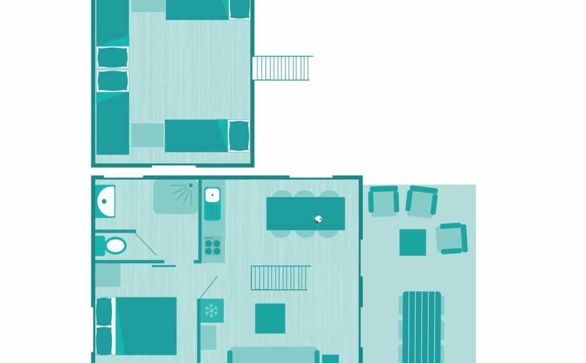 Tente Lodge Nature Mezzanine | 6 pers – 2 ch – 1 sdb | 4 fleurs